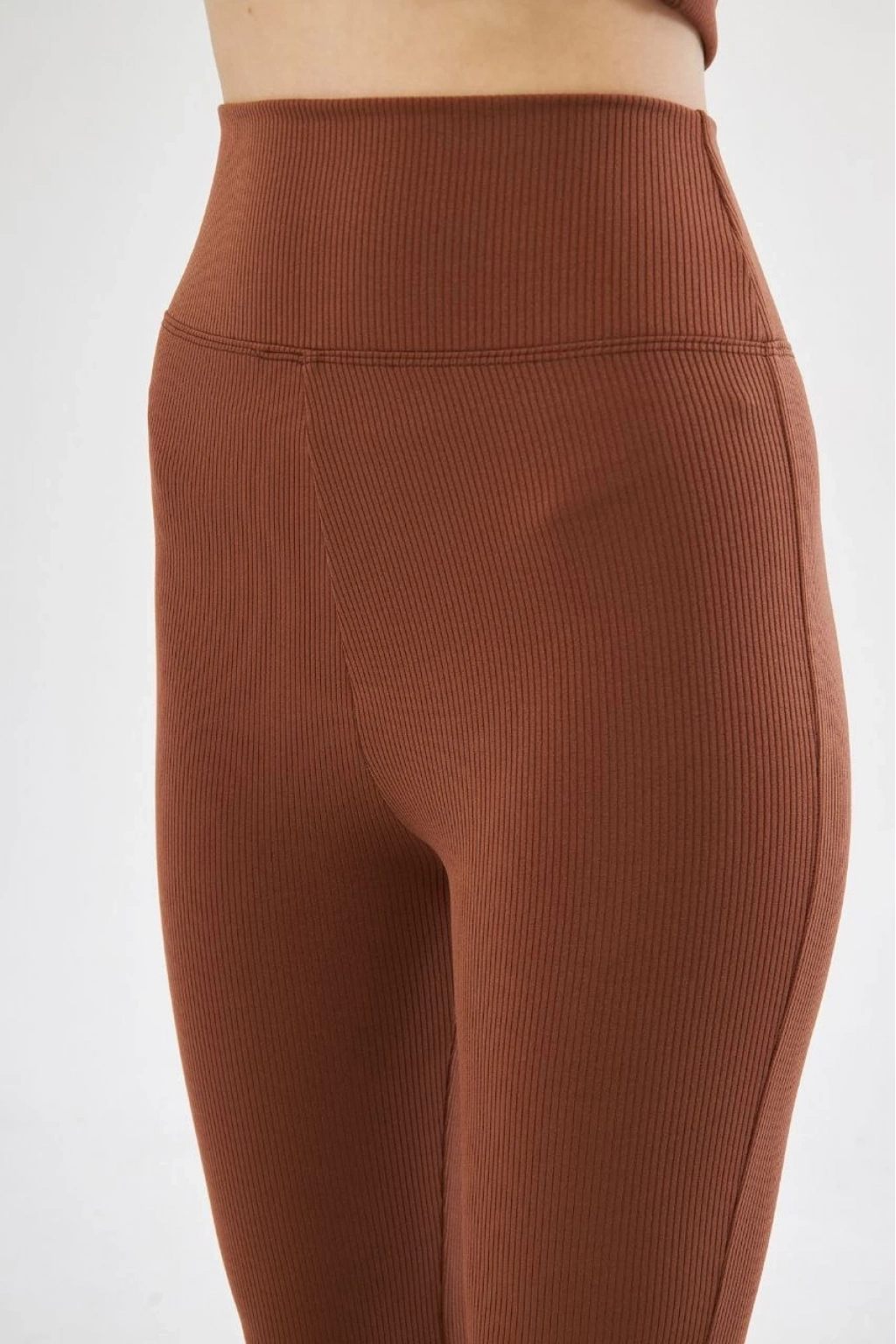 Kadın Yüksel Bel Fitilli İspanyol Paça Tayt - Kahve