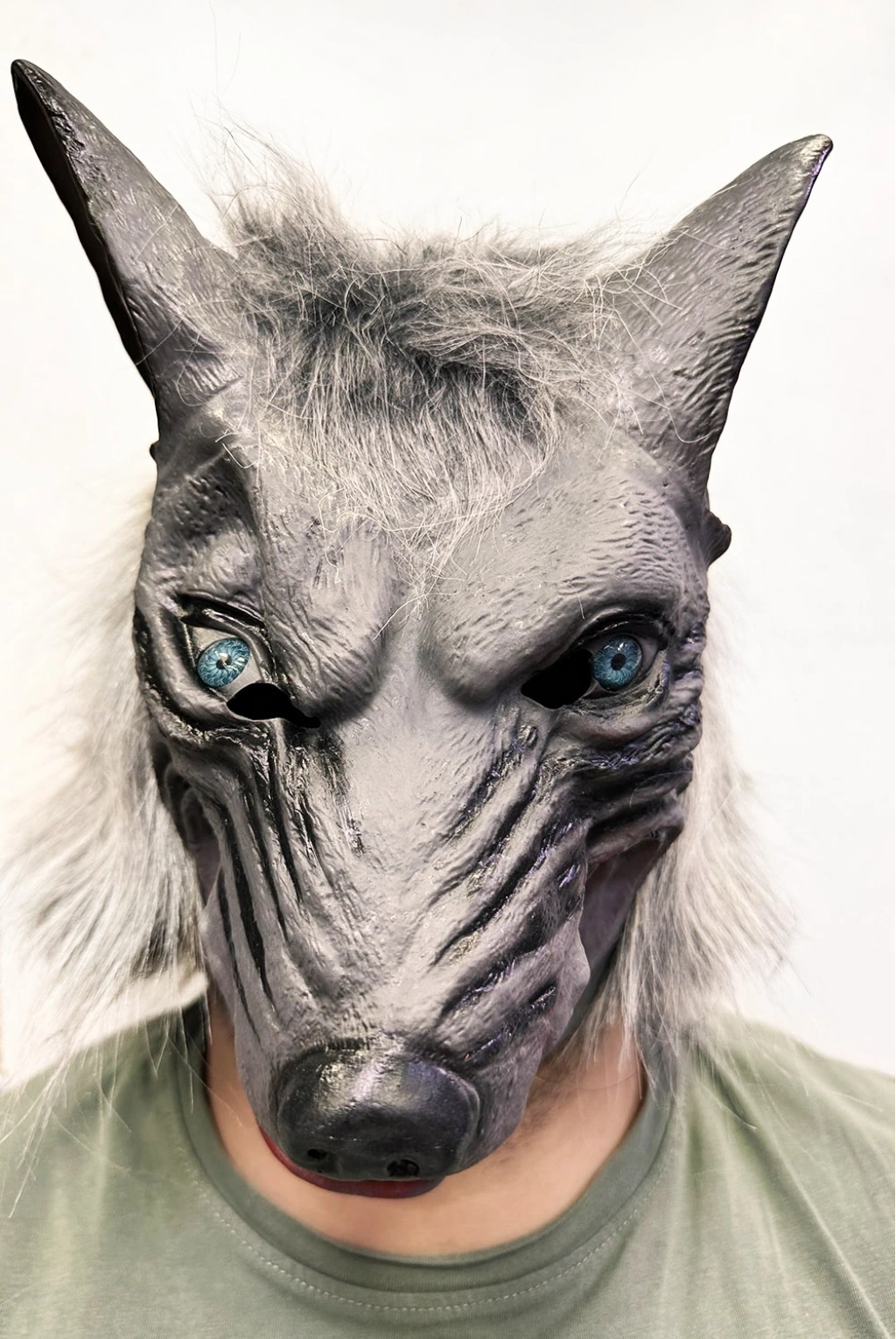 Kafaya Tam Geçmeli Lateks Mavi Gözlü Dişli Ağzı Açık Kurt Maskesi