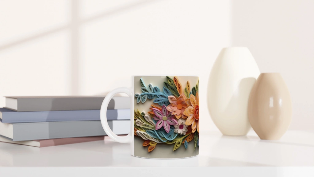 Kağıt Sanatı Çiçekli Kupa Bardak
