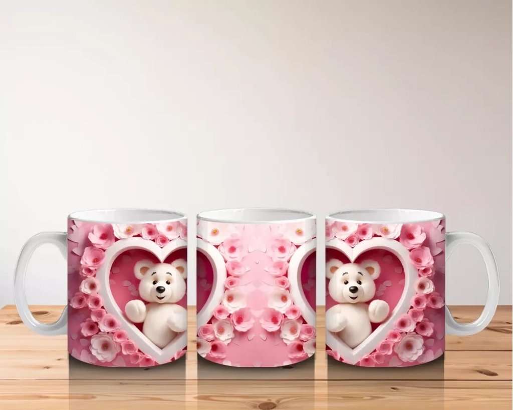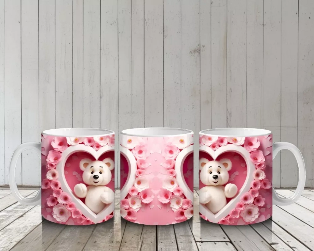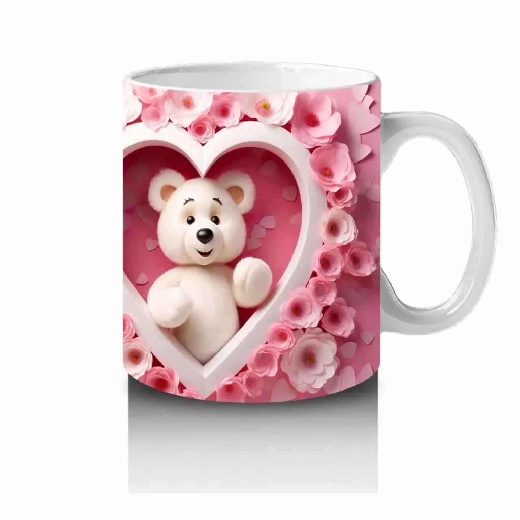 Kalp İçinde Oturan Ayıcık Çifti – Baskılı Kahve Kupası