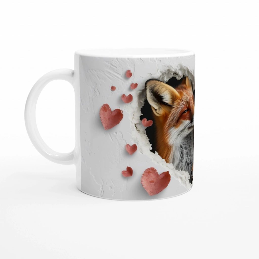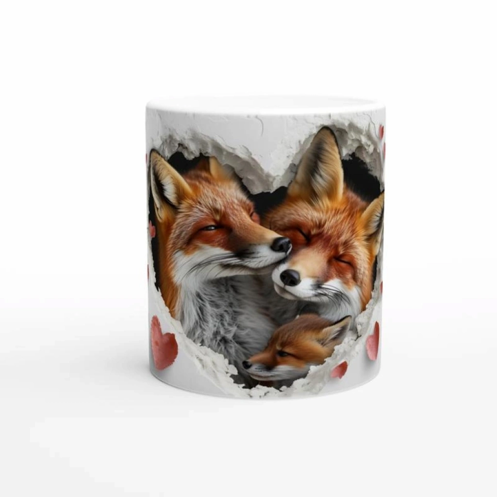 Kalp şeklinde çatlamış beyaz duvarın içinden birbirine sarılan anne, baba ve yavru tilkilerin yer aldığı bu tasarım, sevginin en doğal halini yansıtıyor. Sevdiklerinize anlam dolu bir hediye arıyorsanız bu kupa tam size göre.
