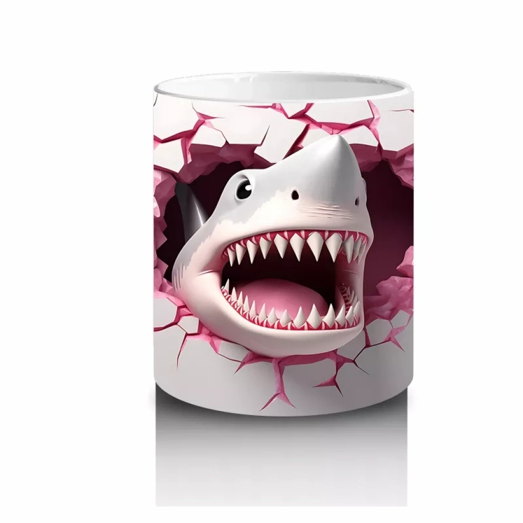 Tatlı bir gülümsemeyle kalp çatlağından bakan bu köpek balığı, hem eğlenceli hem de sıra dışı bir tasarım sunuyor. Mizahi kupalar sevenlere harika bir hediye!