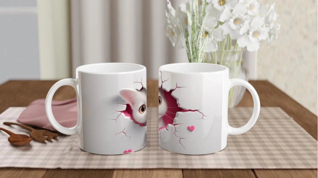 Kalpleri Çatlatarak Bakan Sevimli Kedi Temalı Baskılı Kupa Bardak, minimal arka planıyla sadeliği korurken, tatlı kedi figürüyle gülümsetiyor. Günlük kahve keyfinize eğlence katmak için harika bir tercih!