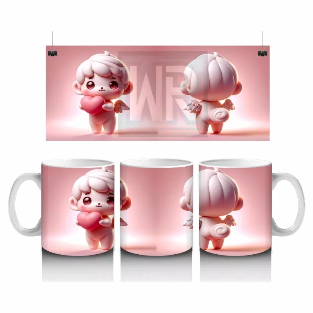 Kalpli Arka Planda İkiz Sevimli Figürler – Baskılı Kahve Kupası