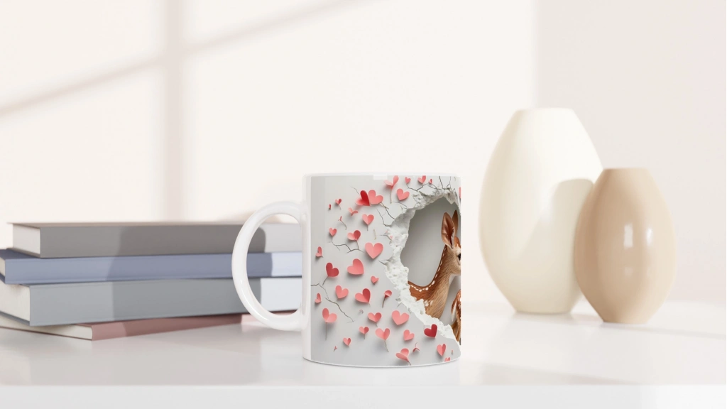 Kalpli Arka Planlı Geyik Aşkı Temalı Baskılı Kupa Bardak