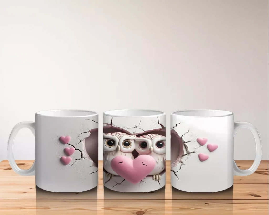 Kalpli Çatlakta Aşk Dolu Baykuş Çifti – Baskılı Kahve Kupası