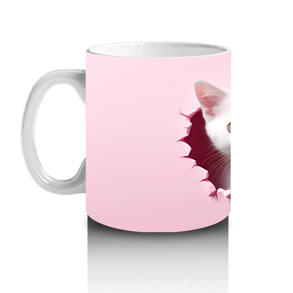 Kalpli Çatlakta Bakan Sevimli Beyaz Kedicikler – Baskılı Kahve Kupası