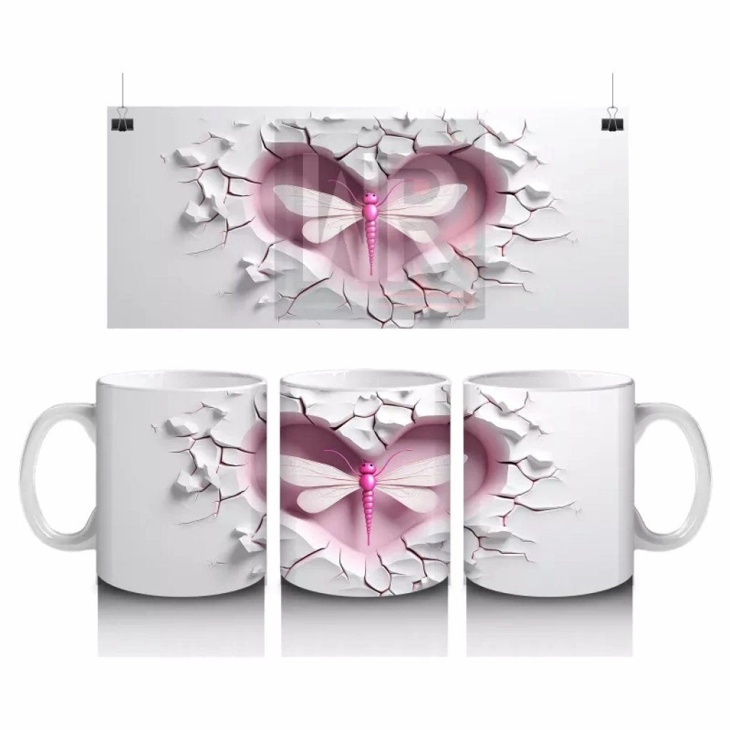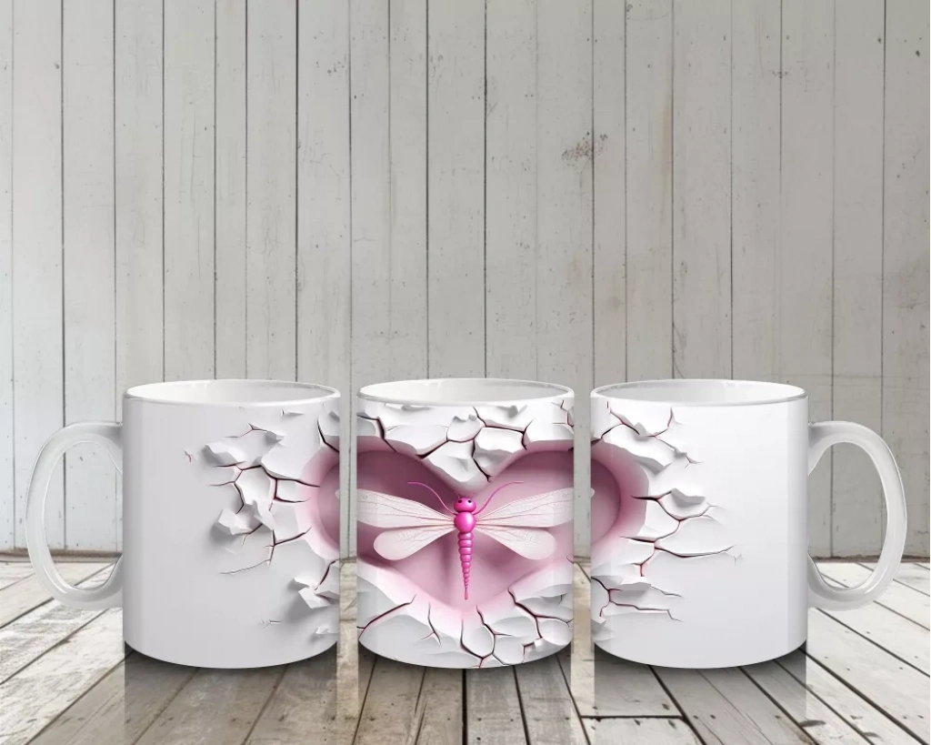 Kalp şeklindeki çatlağın içinde yer alan pembe yusufçuk illüstrasyonu, sadeliği ve zarafetiyle öne çıkıyor. Doğal çizgileri sevenler için şık ve anlamlı bir kupa modeli.