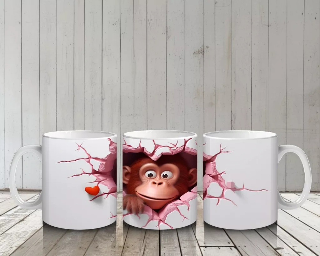Tatlı maymun figürü ve minik kalbiyle bezeli kalpli çatlak deseni, bu kupayı tam bir mutluluk kaynağına dönüştürüyor. Eğlenceli ve sevimli bir tasarımla kahve saatleri artık daha özel.