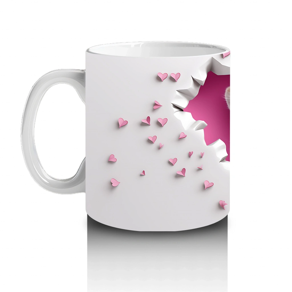Kalp desenli duvar önünde duran leopar, vahşi ve romantik detayları bir arada sunuyor. Cesur ve duygusal tasarımlardan hoşlananlar için etkileyici bir kupa.
