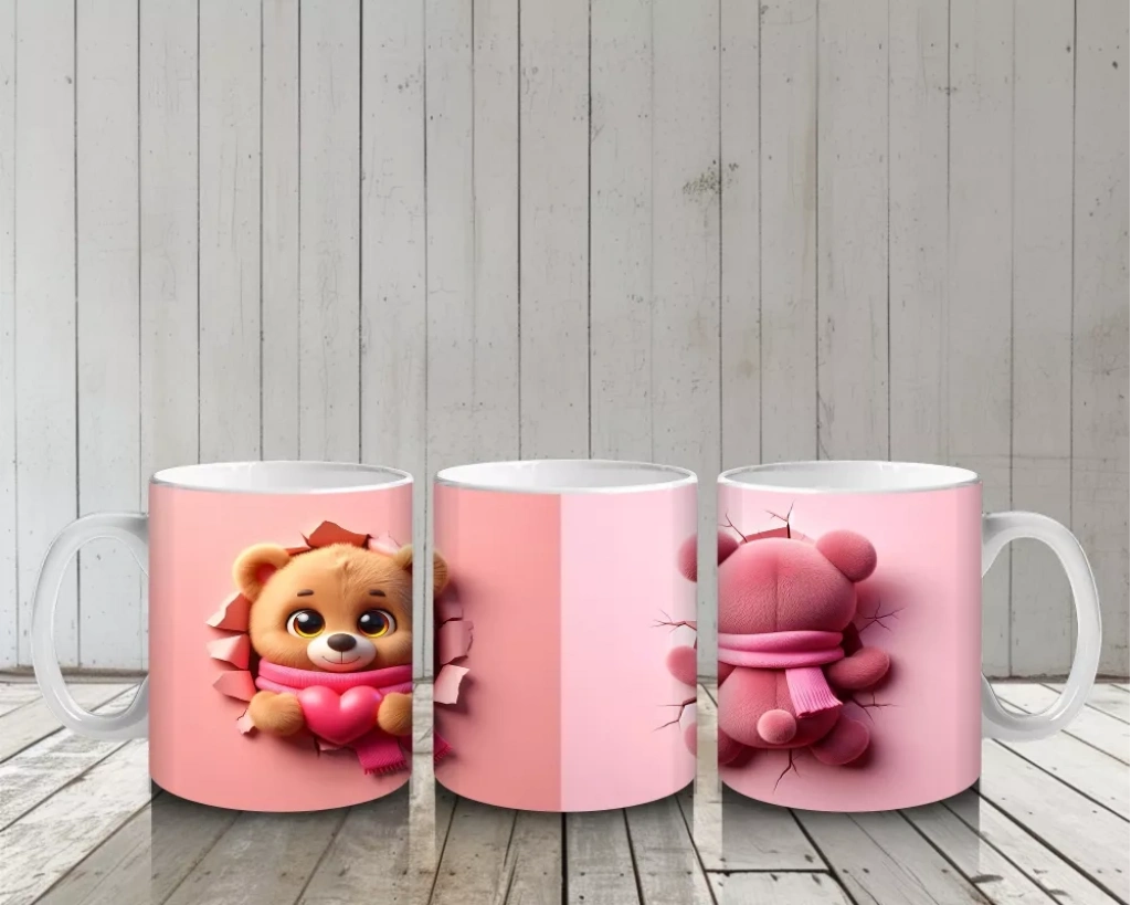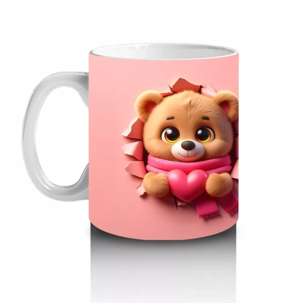 Ön ve arka yüzeyinde kalpli figür tutan ayıcık karakteri, aşkı ve sıcaklığı iki açıdan birden sunuyor. Romantik ve detay odaklı tasarımlardan hoşlananlar için özel bir kupa.