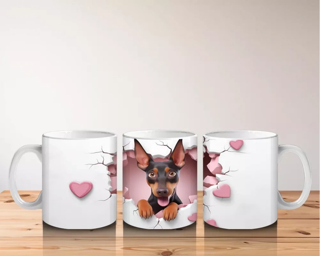 Kalpli Fon Üzerinde Sevimli Doberman – Baskılı Kahve Kupası
