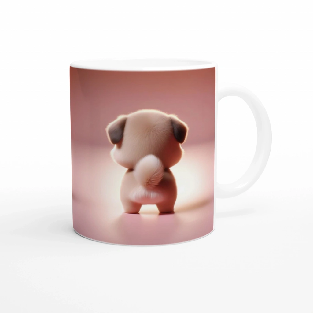 Ön ve arka yüz tasarımıyla detaylandırılan bu sevimli köpek figürü, pembe arka plan üzerinde pastel tonlarla vurgulanmış ve hem çocuklara hem de romantik hediye arayan yetişkinlere hitap ediyor. Her yudumda tatlı bir tebessüm armağan eder.