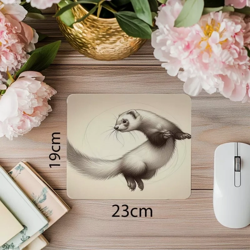 Karakalem ferret mousepad – hareketli kompozisyonuyla masanda canlılık ve zarafet! İnce detaylar ve rahat yüzeyiyle oyun ve çalışma keyfini yükselt.