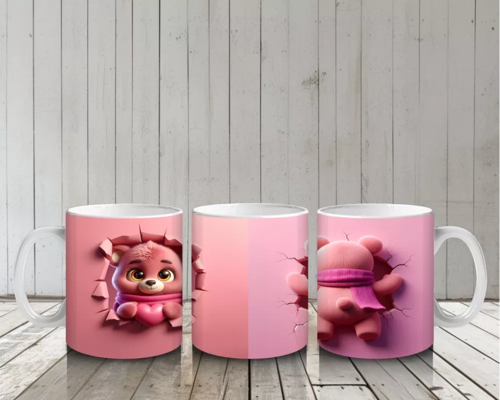 Kare desenli zemin üzerinde elinde kalp tutan bu sevimli ayıcık, hem düzenli hem de duygusal bir atmosfer sunuyor. Hem sade hem romantik bir kupa arayanlara ideal bir seçenek.