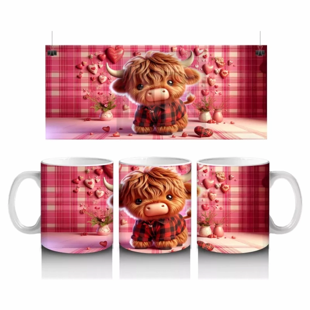 Kare desenli modern fon önünde duran bu romantik boğa, güçlü duruşuna rağmen sevgi dolu bir ifade taşıyor. Stil sahibi ve duygusal temaları birleştiren özgün bir kupa tasarımı.