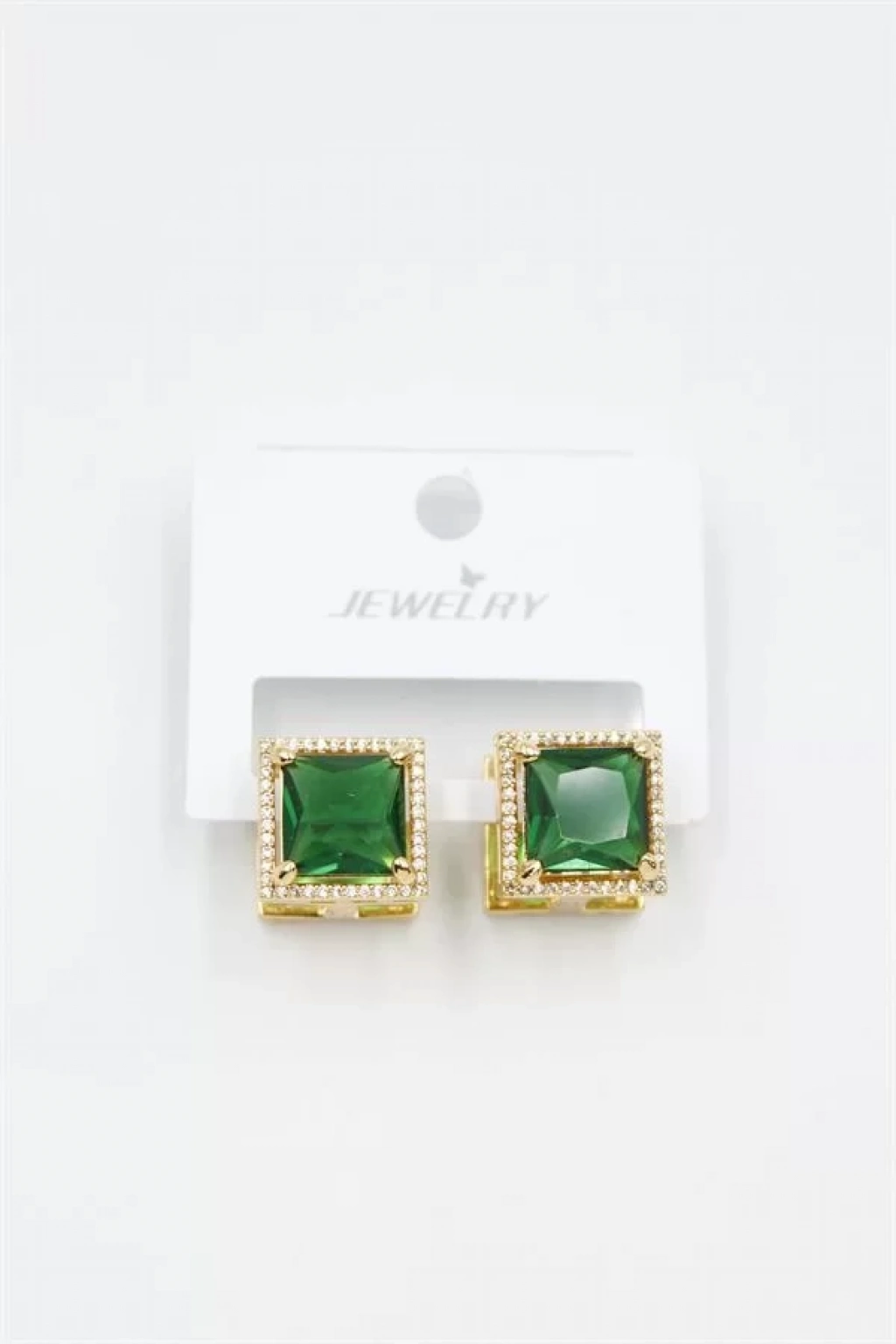 Kare Taşlı Küpe - Yeşil