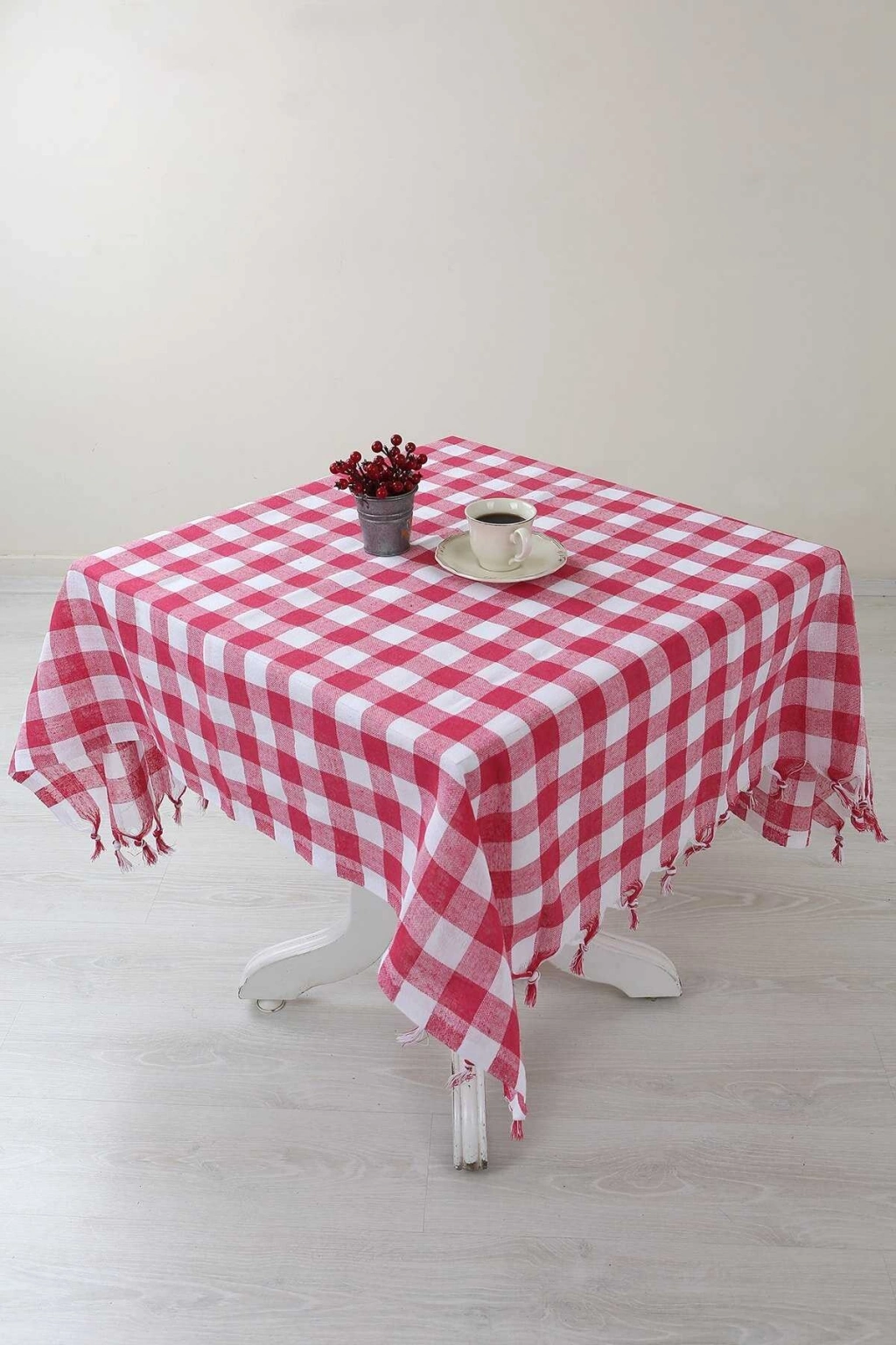 Kareli Saçaklı Kırmızı Masa/piknik/sofra Örtüsü 165x170 Cm