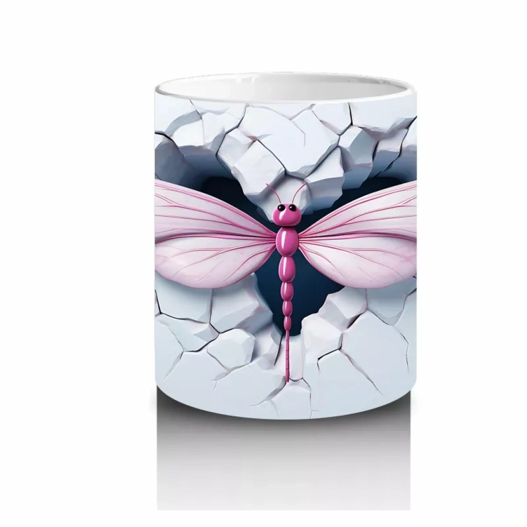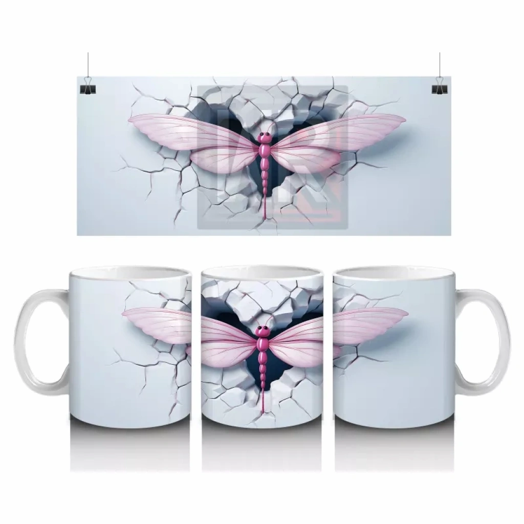 Kırık Zeminden Fırlayan Büyük Pembe Yusufçuk – Baskılı Kahve Kupası