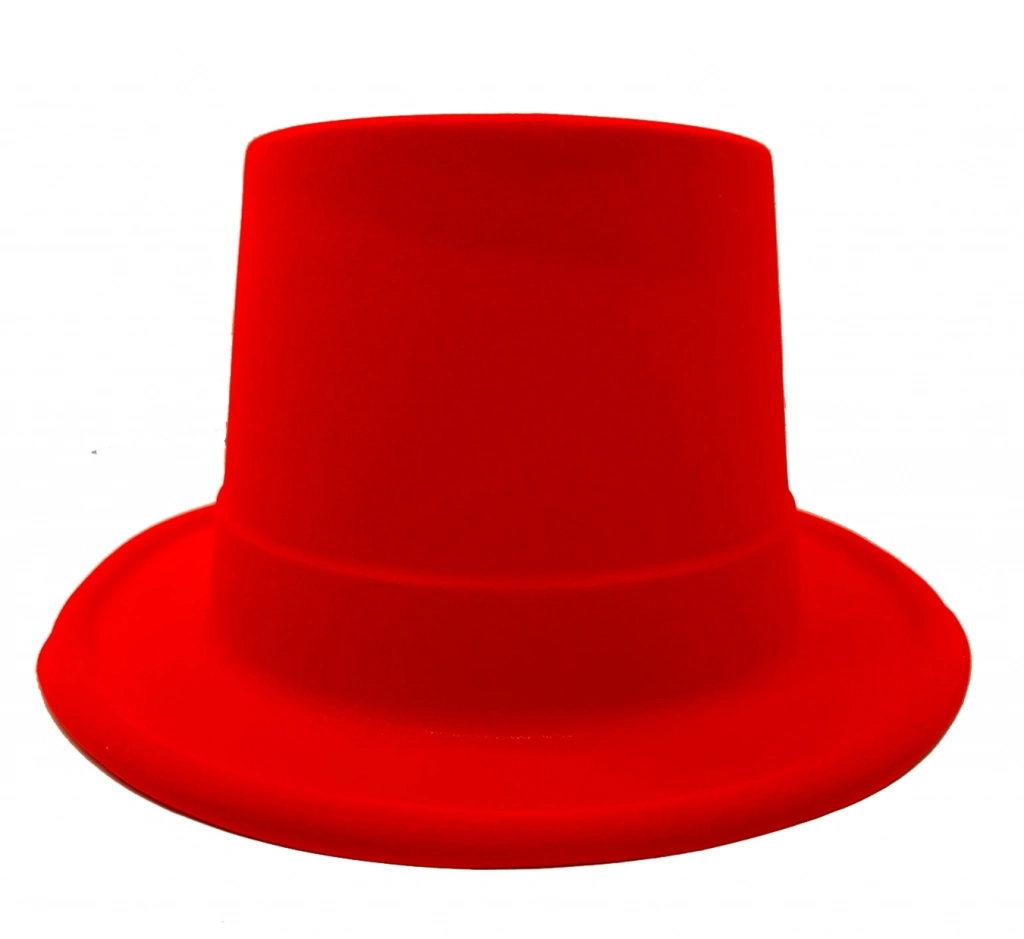 Kırmızı Renk Plastik Nubuk Kadife Flok Kaplama Fötr Şapka 11 Cm