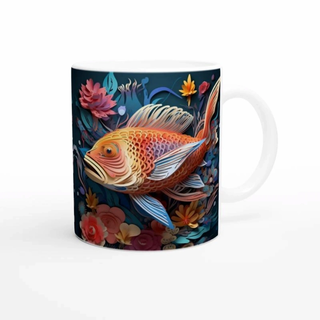 Koi Balığı ve Çiçek Desenli Baskılı Kupa Bardak