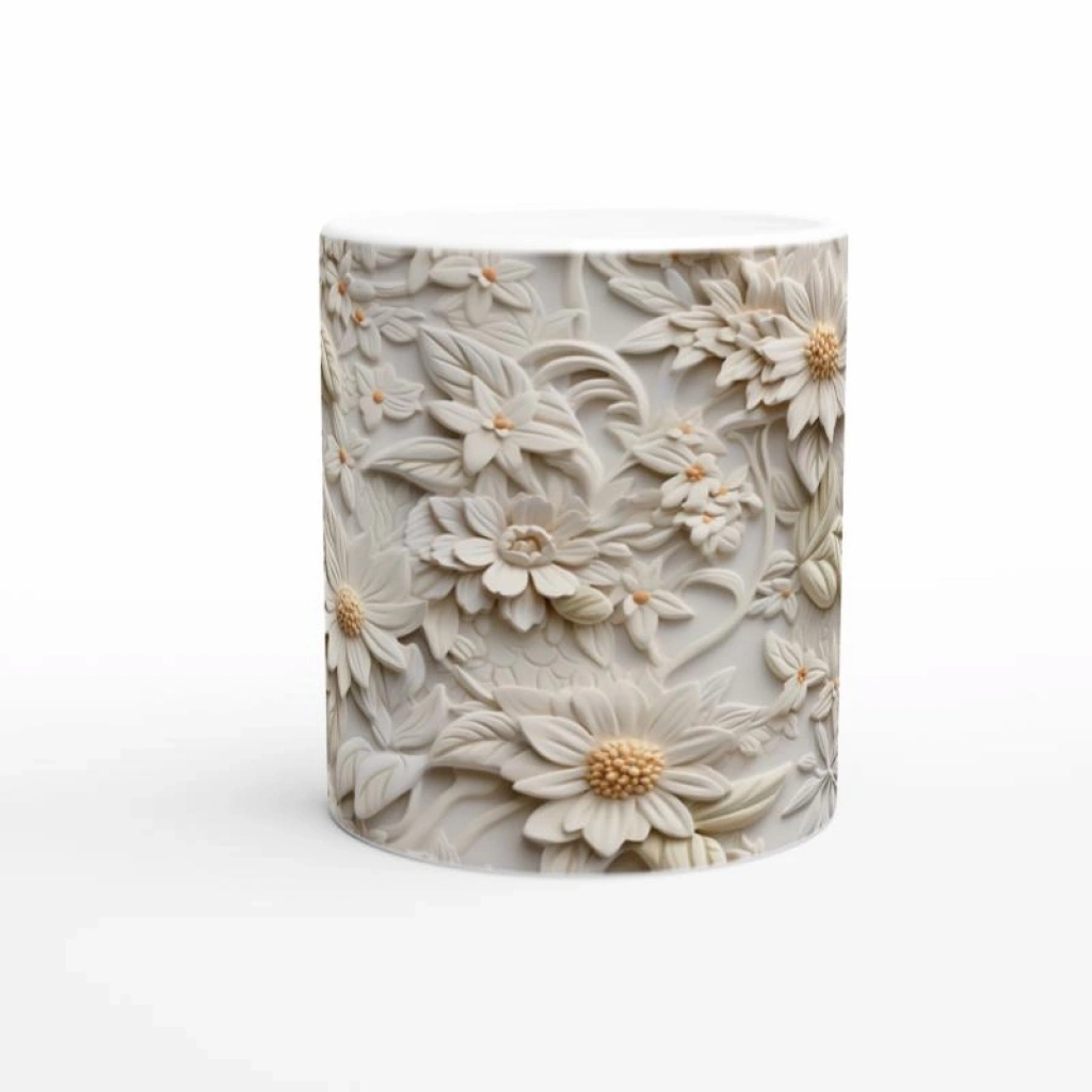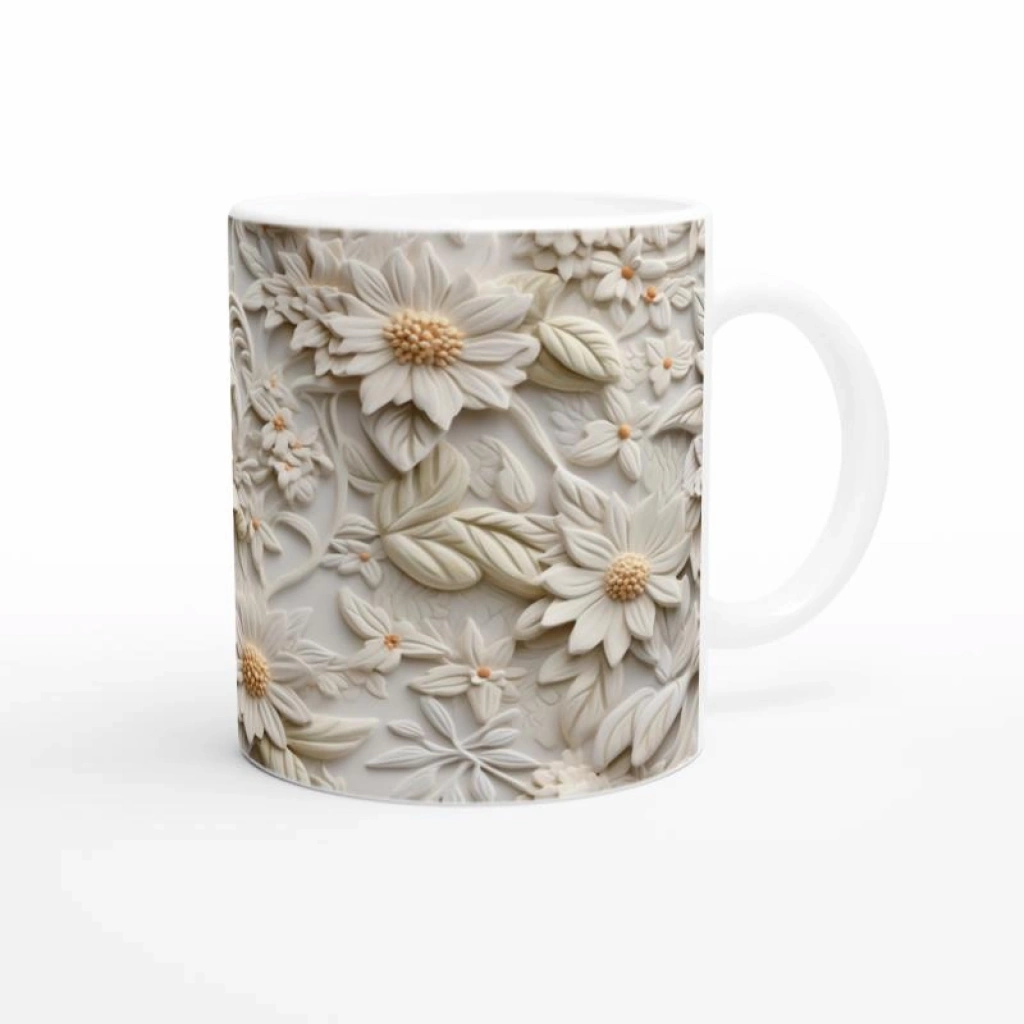 Pastel tonlu kabartma çiçek desenleriyle tasarlanan bu kupa bardak, sade şıklığı sevenler için huzur dolu bir içim deneyimi sunar.