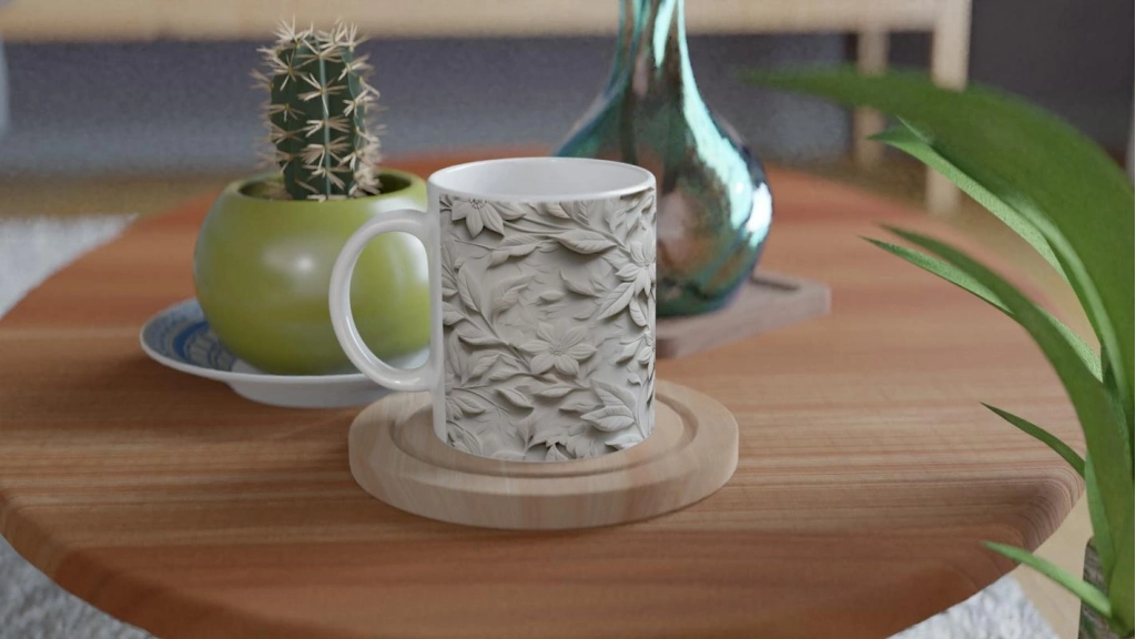 3D etkili yaprak ve çiçek detayları, tasarımı hem sade hem göz alıcı hale getirerek her yudumda estetik bir deneyim yaşatır.