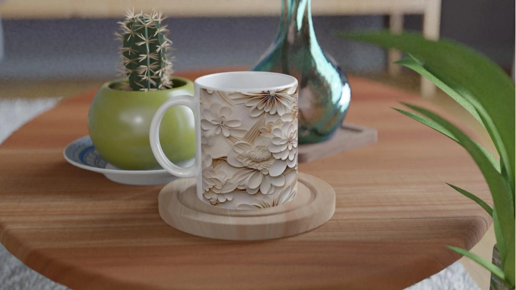 Katmanlı ve kabartmalı çiçek desenleriyle bezeli bu özel kupa bardak, her ortamda sofistike bir hava yaratır.