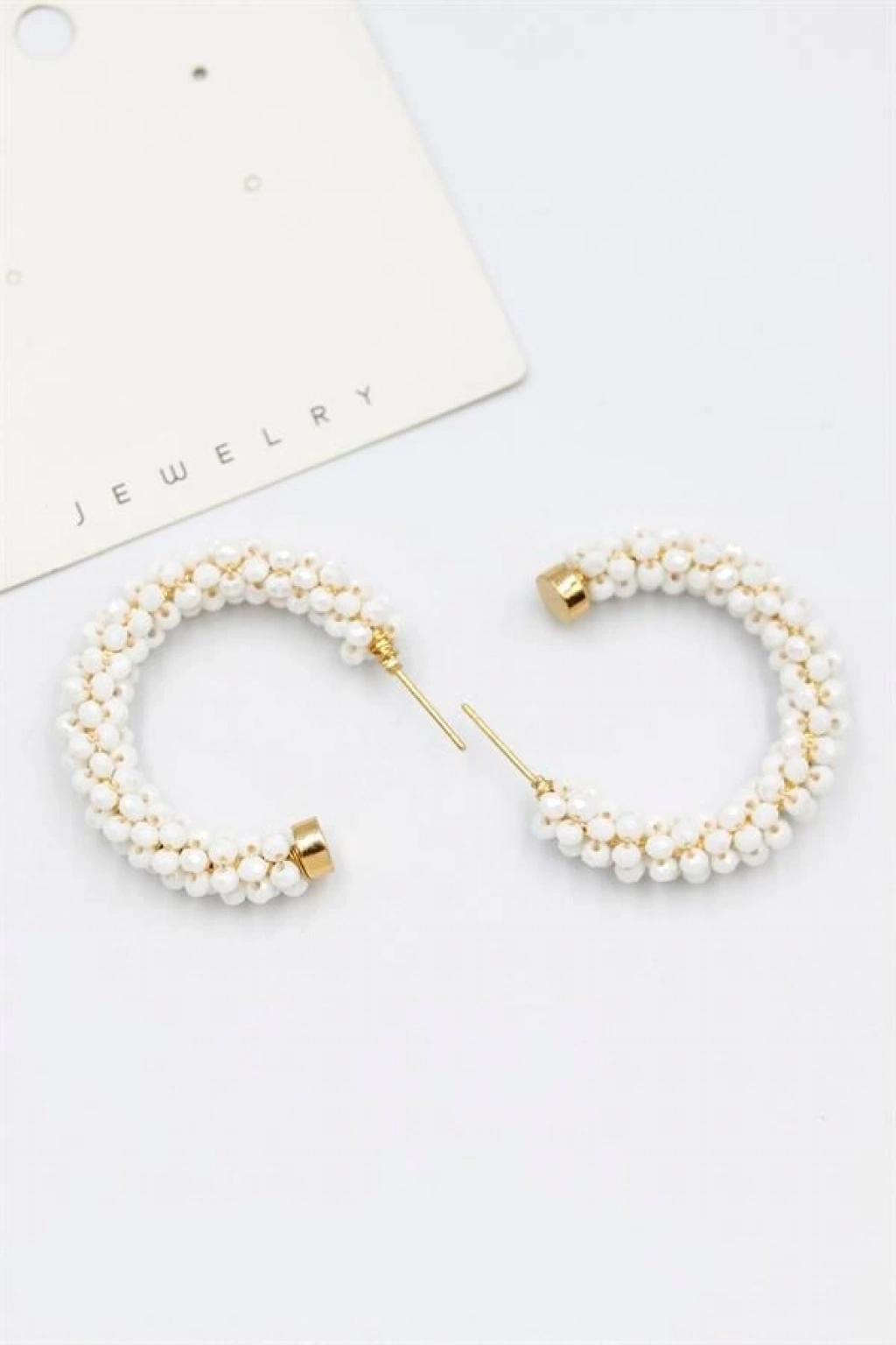 Kristal Boncuk Halka Küpe - Beyaz