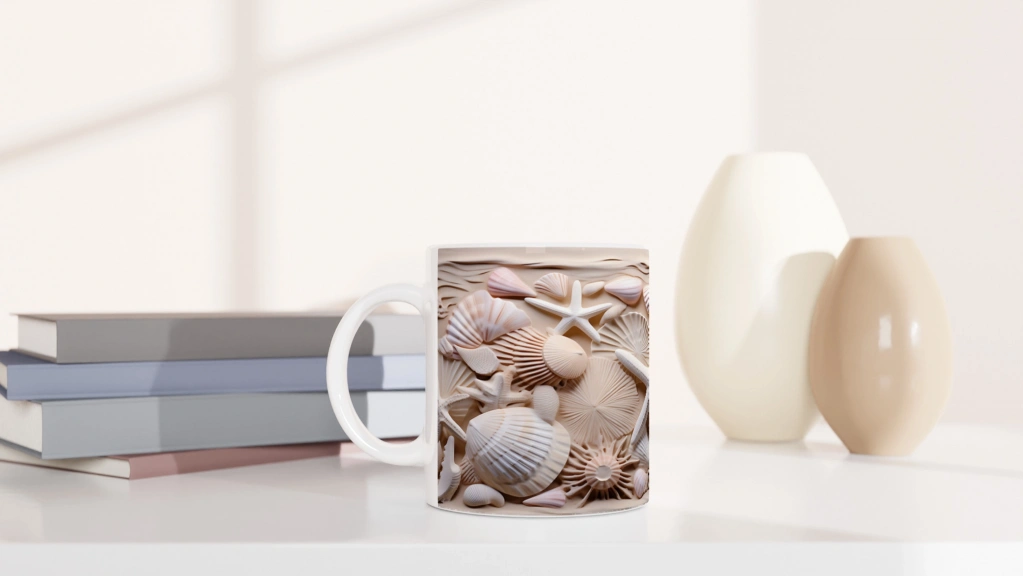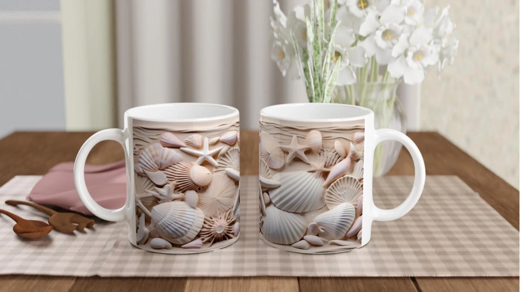 Kabuk ve deniz yıldızı detaylarının zarif uyumuyla dikkat çeken bu kupa bardak, yazı özleten bir şıklık sunuyor.