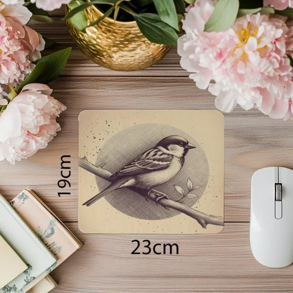 El çizimi kuş figürlü mouse pad tasarımı, pürüzsüz kaydırma yüzeyi ve kaymaz alt zeminle şık ve işlevsel bir deneyim sunar.