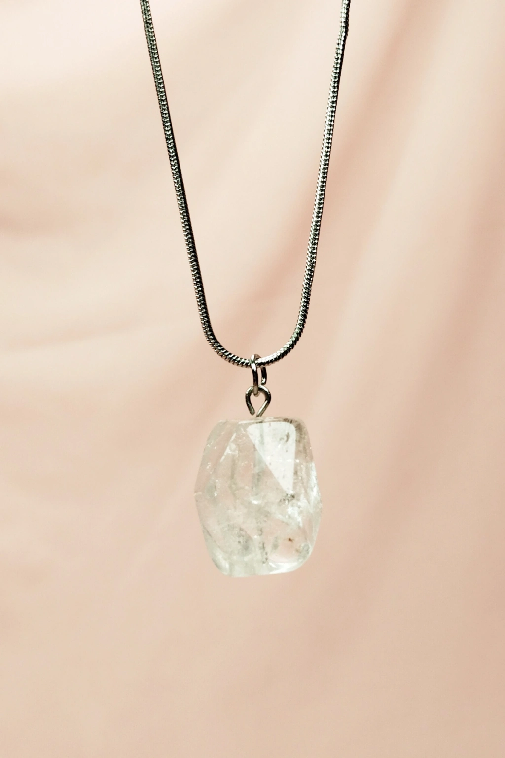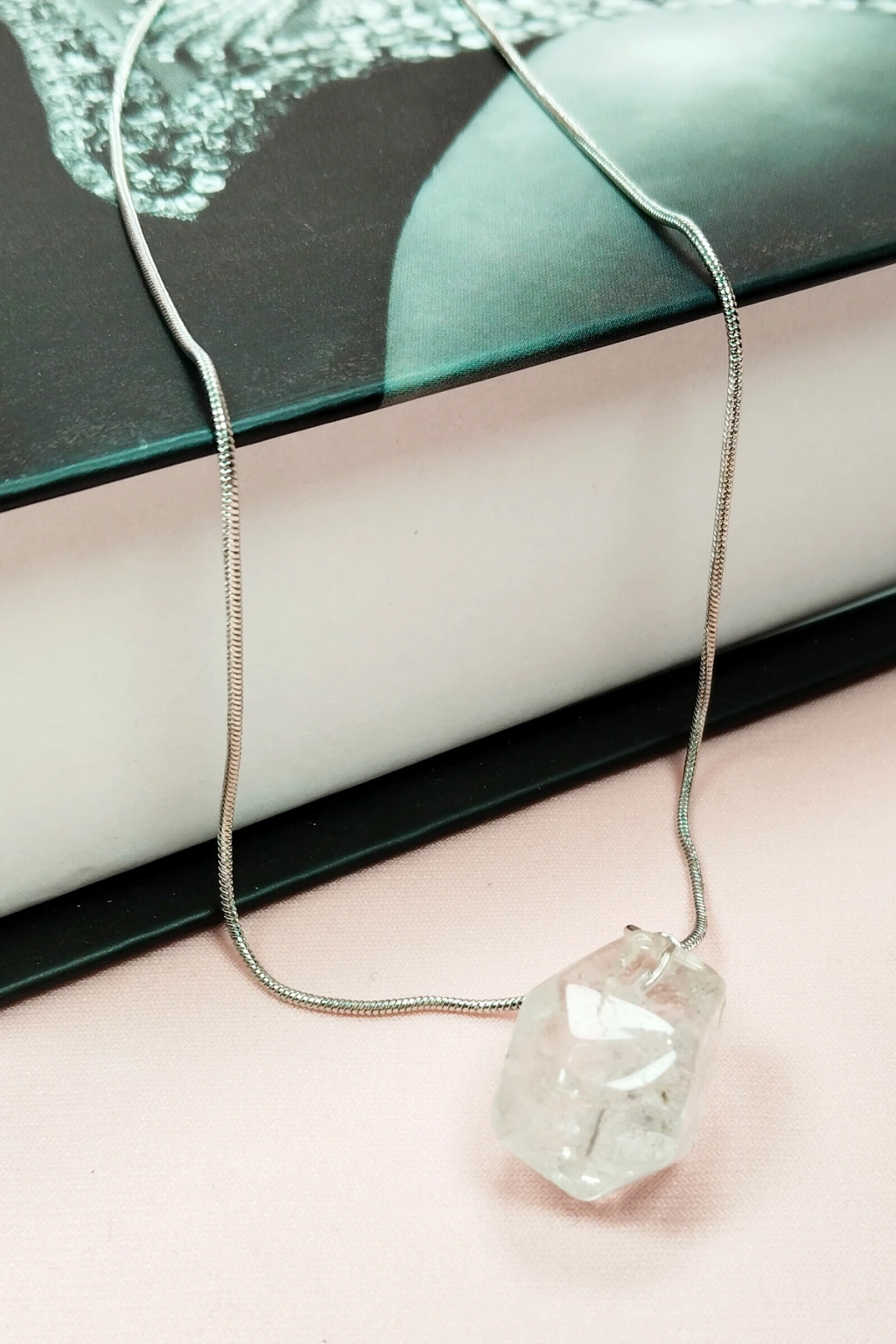 Kuvars Doğal Taşı Zincirli El Yapımı Kolye Uç: 2 cm Zincir: 20 cm Kutulu