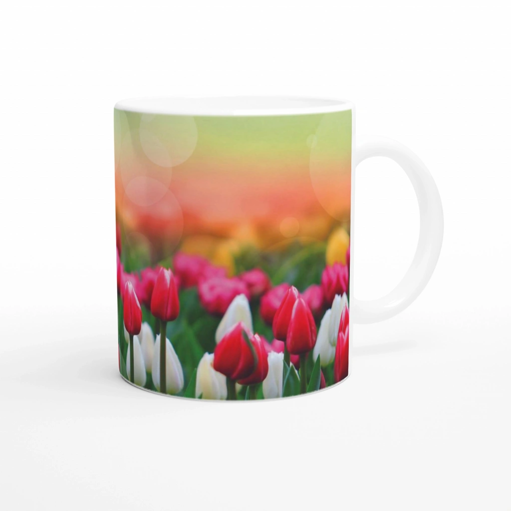 Lale Bahçesi Manzaralı Kupa Bardak, canlı tonlardaki laleleri ve flu gün batımı fonuyla içecek keyfinizi pastoral bir deneyime dönüştürür. Baharın neşesini ve doğanın canlılığını yansıtan bu tasarım, hem estetik hem de duygusal bağ kuran bir hediye alternatifi olarak öne çıkar.