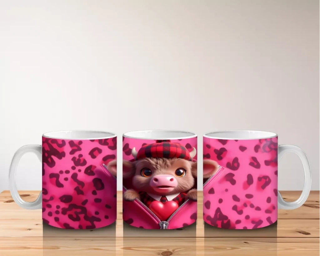 Leopar Desenli Arka Planda Aşık Buzağı – Baskılı Kahve Kupası