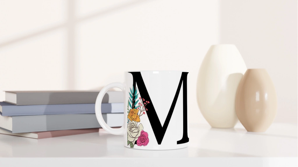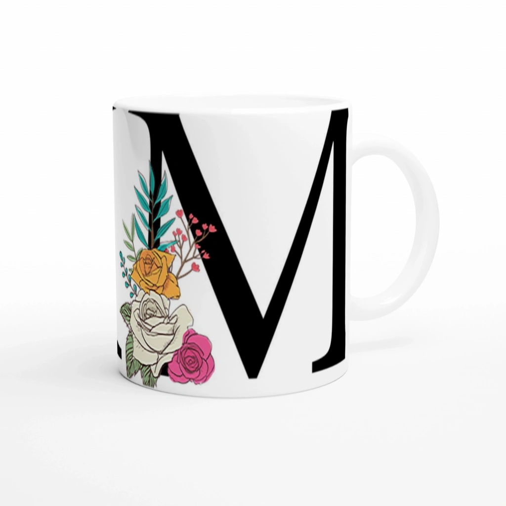 Altın sarısı ve beyaz güllerle süslenen bu m harfi baskılı kupa bardak, zarif detaylarıyla dikkat çekerken sevgi dolu bir hediye alternatifi oluşturuyor.