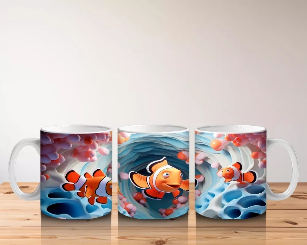 Okyanusun huzuru her yudumda seninle! ?? Palyaço balığı ailesinin mavi dalgalar arasındaki tatlı yolculuğu, deniz severlere özel bir hediye alternatifi sunuyor.