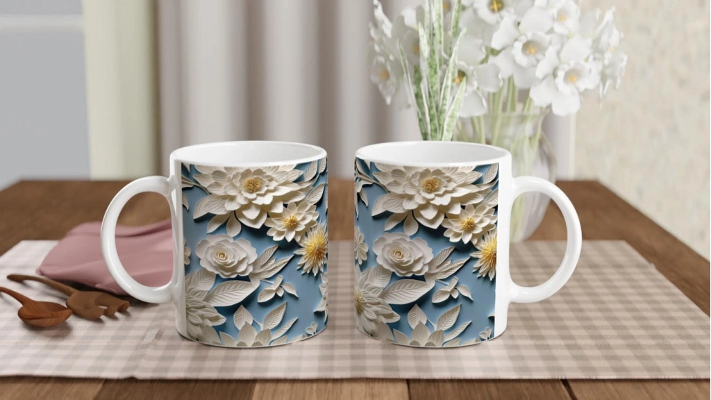 Lotus, papatya ve gül formlarının üç boyutlu tasarımıyla öne çıkan bu özel kupa bardak, hem modern dekorlar hem de özel gün hediyeleri için kusursuz bir seçenek sunuyor.