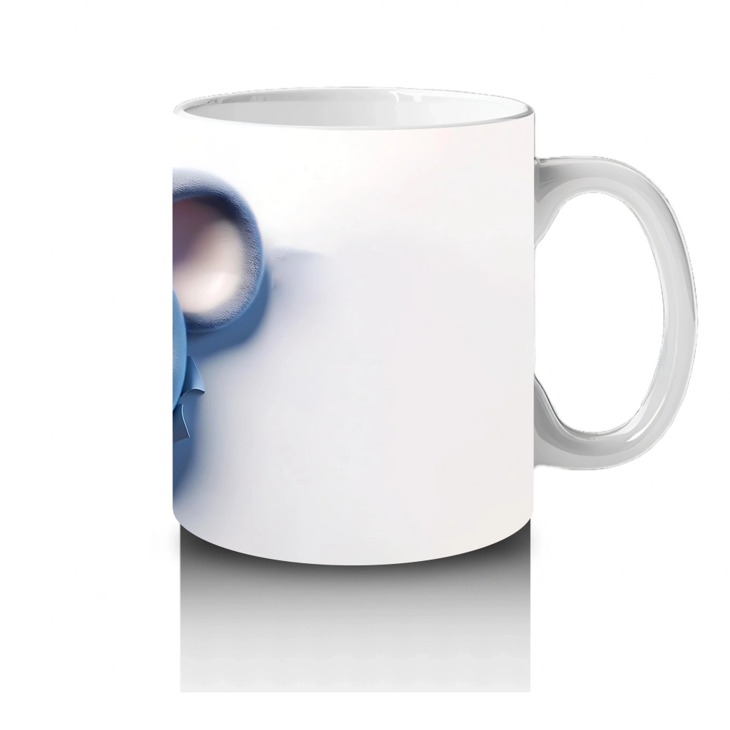 Mavi Gözlü Gülümseyen Fare Maskot – Baskılı Kahve Kupası