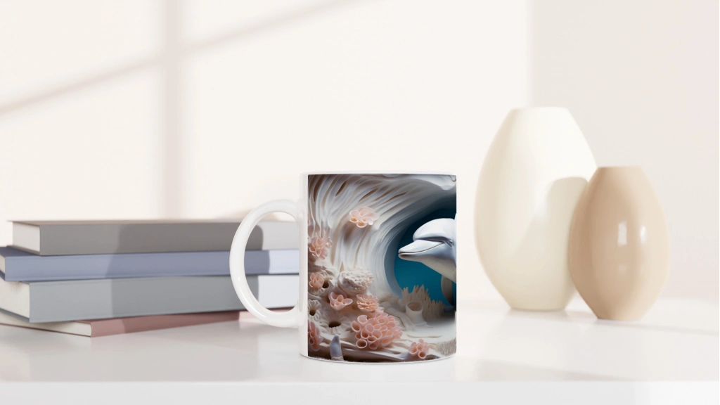 Detaylı mercan dokuları ve gülümseyen sevimli yunus figürüyle süslenen bu özel kupa bardak, her yudumda ferahlatıcı bir deniz esintisi hissettiriyor.