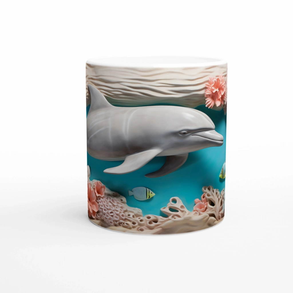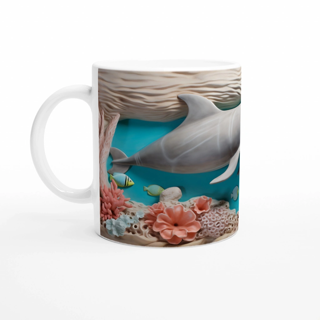 Canlı mercan renkleri, oyunbaz balıklar ve masalsı bir sualtı atmosferi sunan bu yunus desenli kupa bardak, her kullanımda içinizi serinleten bir tatil hissi uyandırıyor.