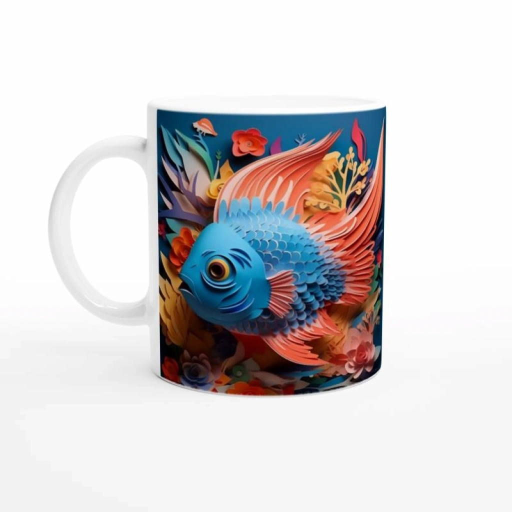 Denizlerin büyüleyici dünyasını kupanıza taşıyın! Mercan kanatlı ve mavi pullarla bezeli