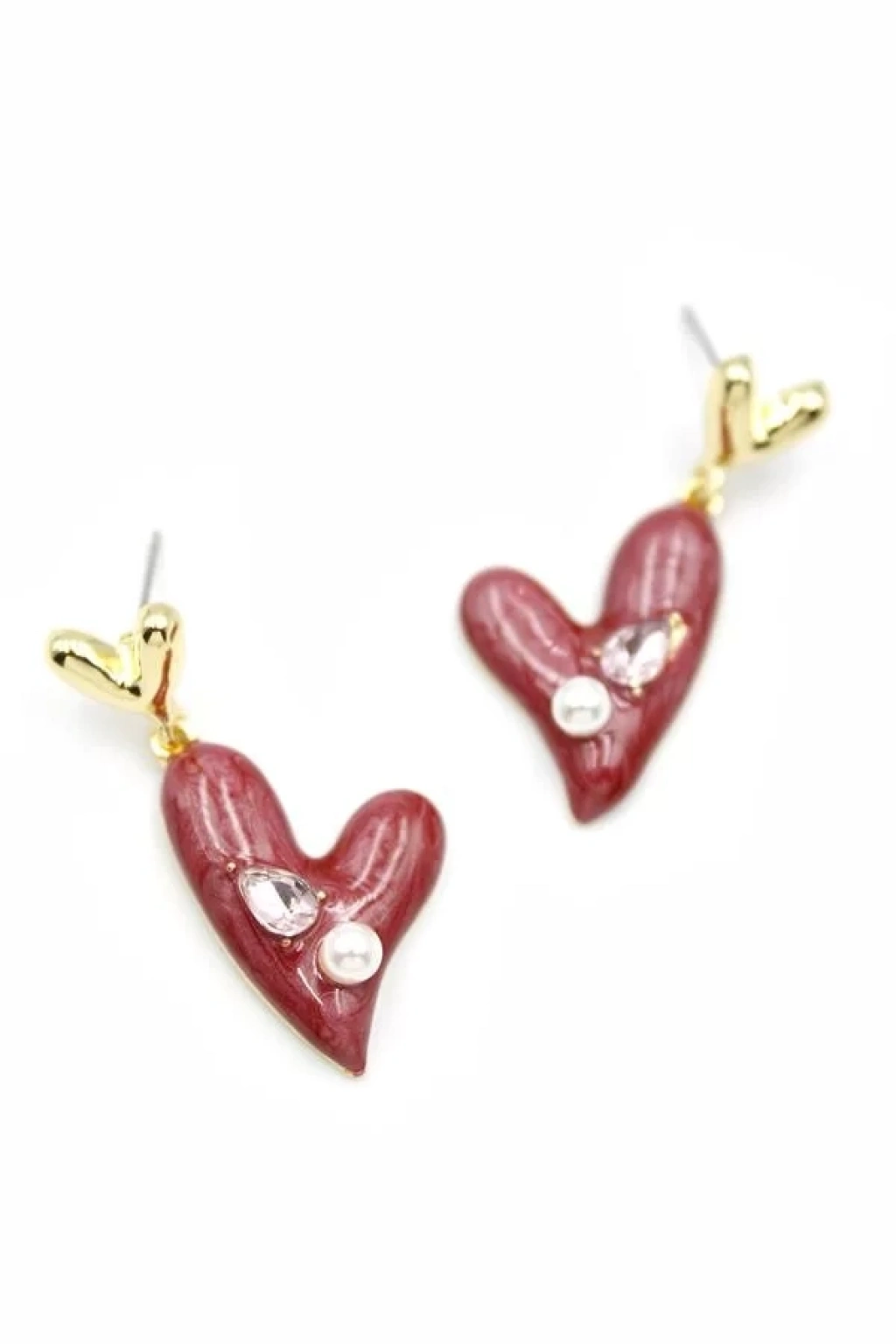 Mineli Kalp Küpe - Bordo