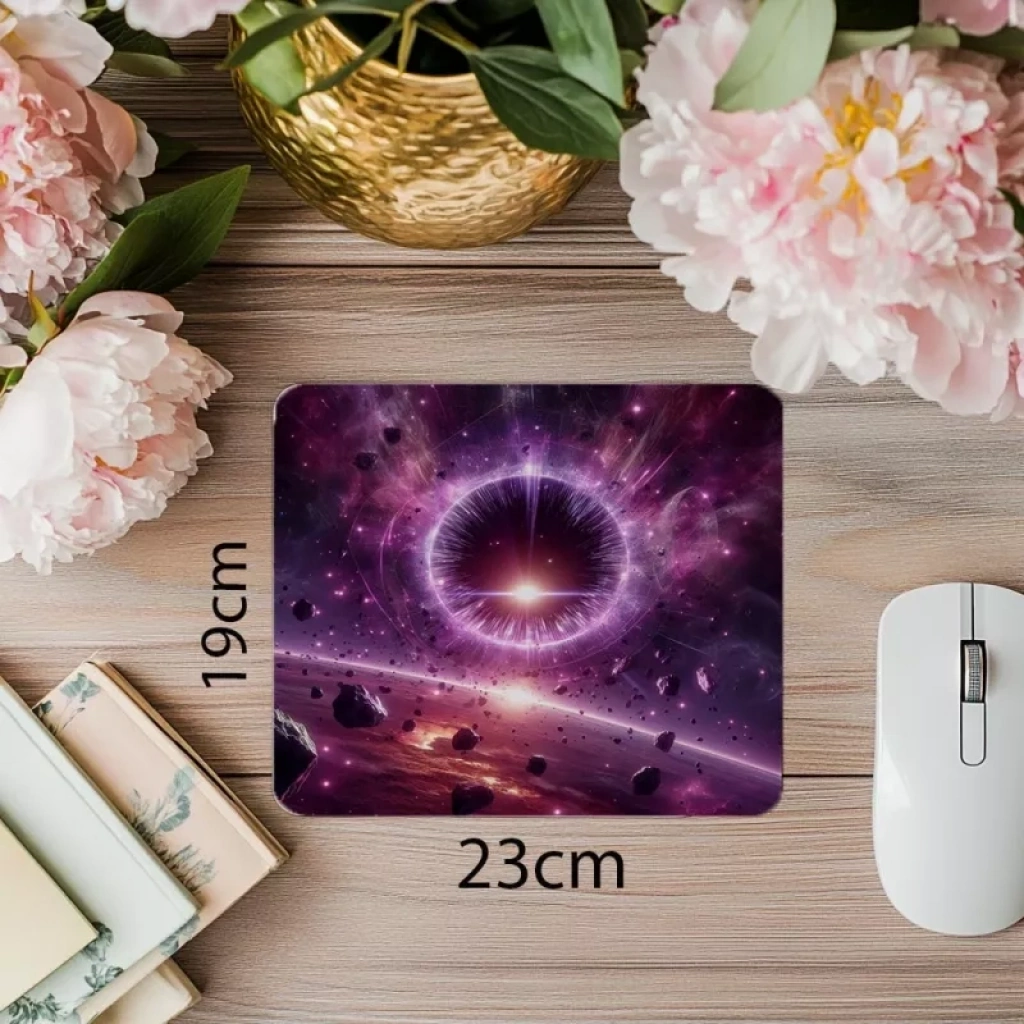 Mor Renkli Portal ve Asteroitli Mousepad - 19x23 cm 2 mm Dikdörtgen İthal Baskılı Mouse Pad