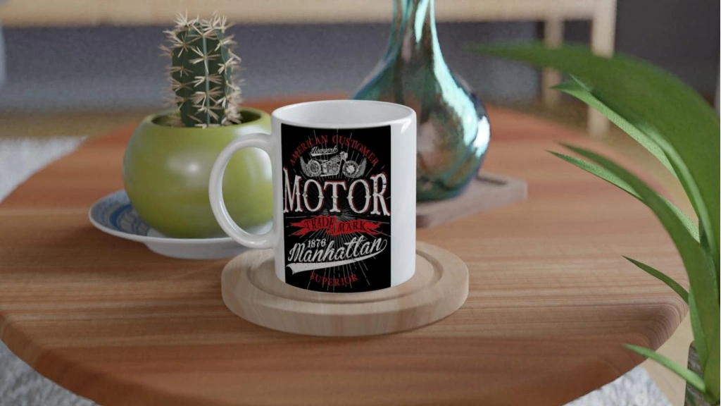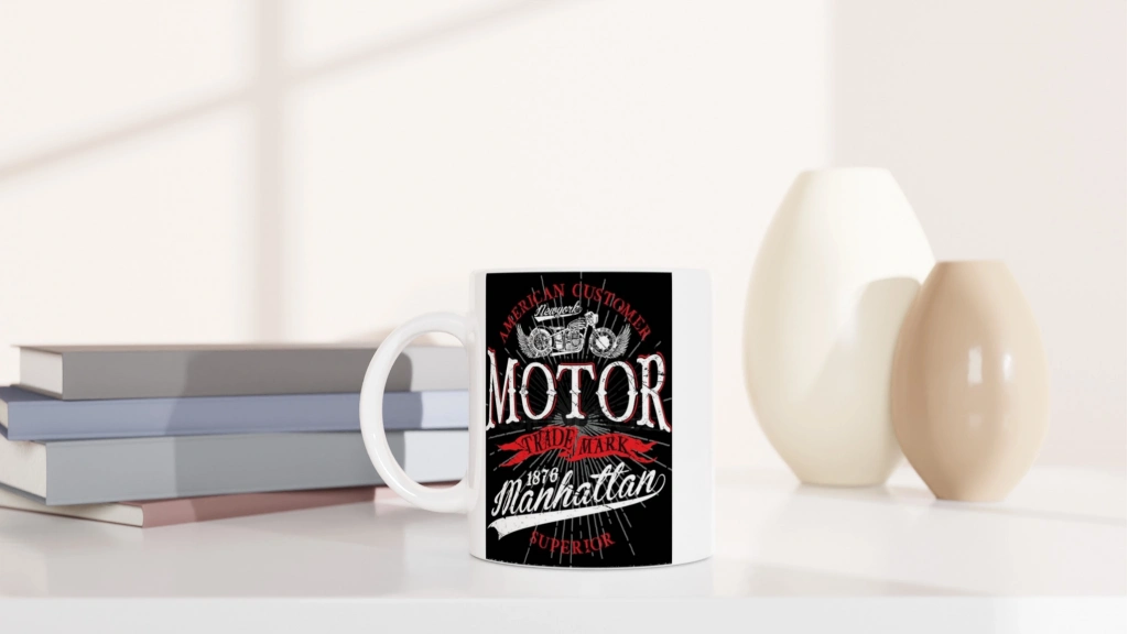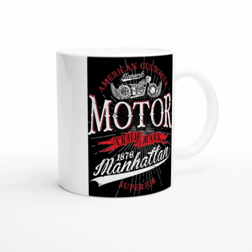 1876 Manhattan yazısıyla retro bir tarz sunan bu motor baskılı kupa bardak, klasik motor kültürünü sevenler için ideal bir seçimdir.