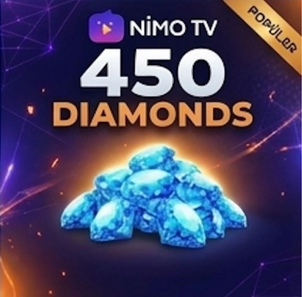 Nimo TV için 450 Diamonds — Efsanevi destek, zirve hediyeler, tam platform hâkimiyeti! User ID'nizi girin, elmaslar anında hesabınıza yüklenir. Favori yayıncına en güçlü desteği ver, liderlik tablosunda rakipsiz ol ve Nimo TV'nin gerçek efsane kullanıcısı olmak için adımını at!