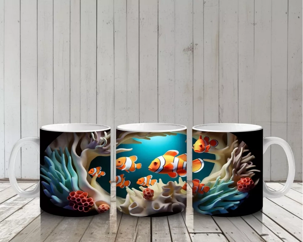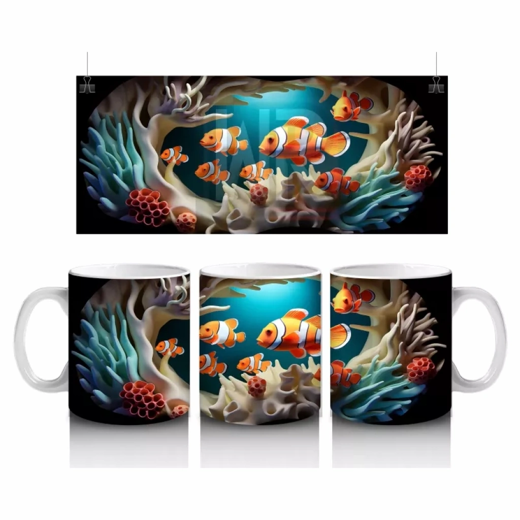 Okyanus Derinliğinde Neşeli Palyaço Balıkları – Baskılı Kupa
