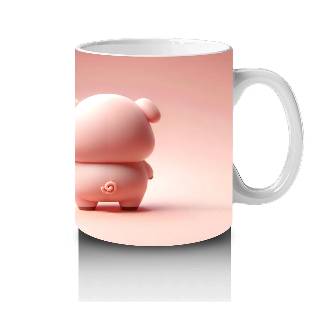 Ön ve Arka Yüzüyle Sevimli Domuz Maskotlar – Baskılı Kahve Kupası
