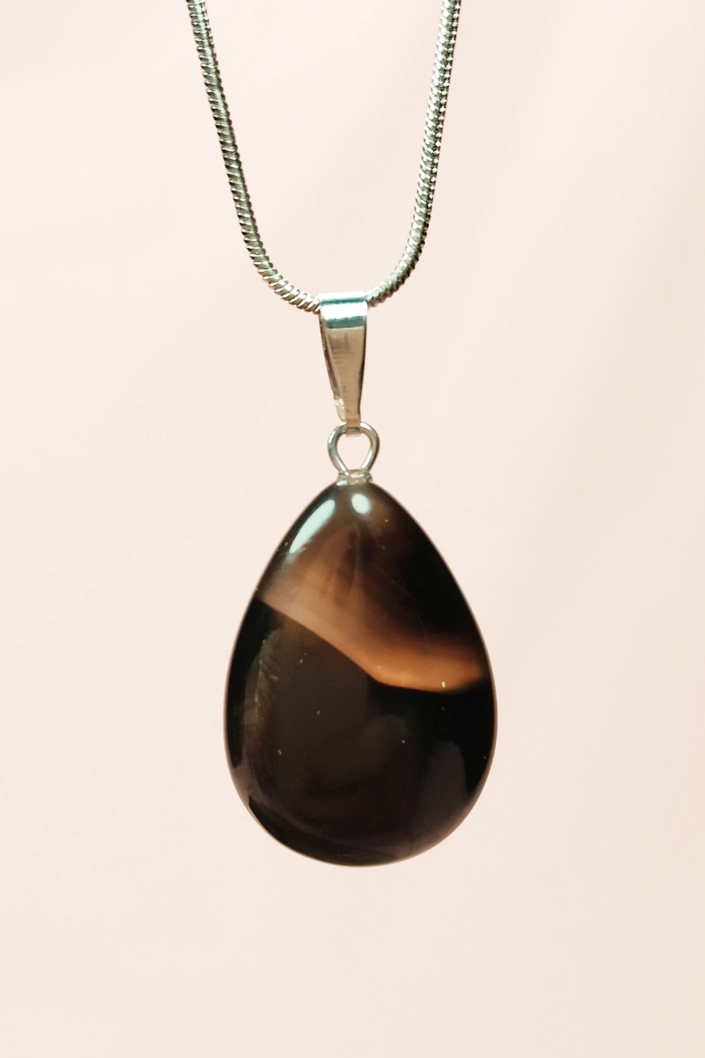 Onix Kuvars Doğal Taşı Zincirli El Yapımı Kolye Uç: 2 cm Zincir: 20 cm Kutulu