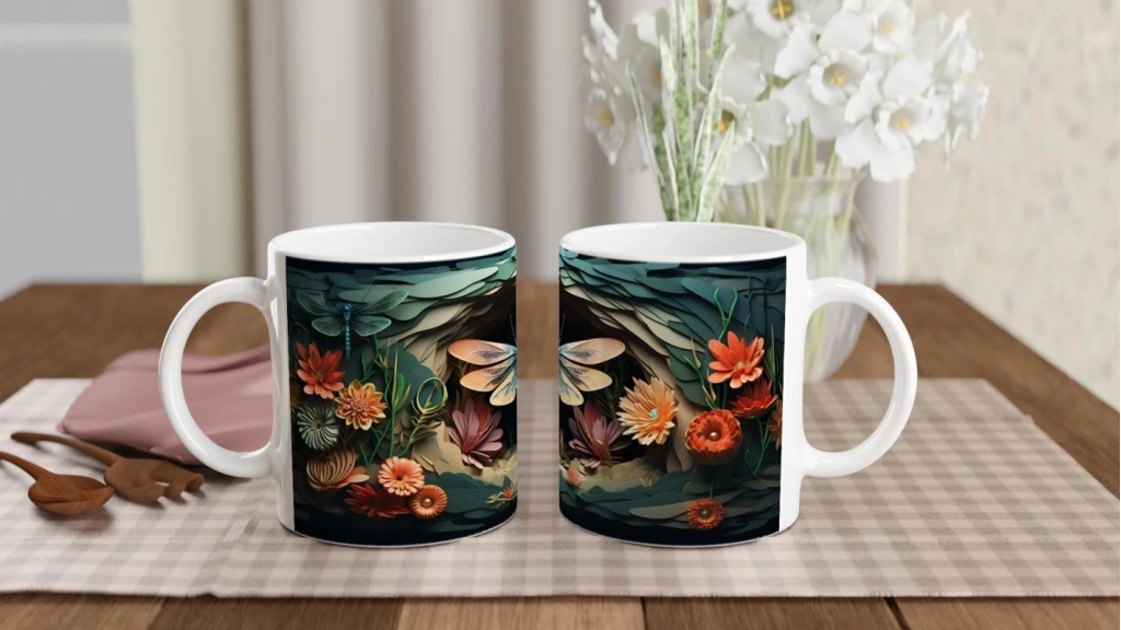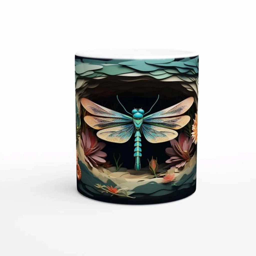 Orman Çiçekleri Arasında Turkuaz Yusufçuk Temalı Baskılı Kupa Bardak, rengarenk çiçeklerle bezeli bir doğa sahnesinde yer alan ince işçilikli yusufçuk illüstrasyonuyla görsel bir şölen sunar. Doğadan ilham alan estetik tasarımıyla dikkat çeker.