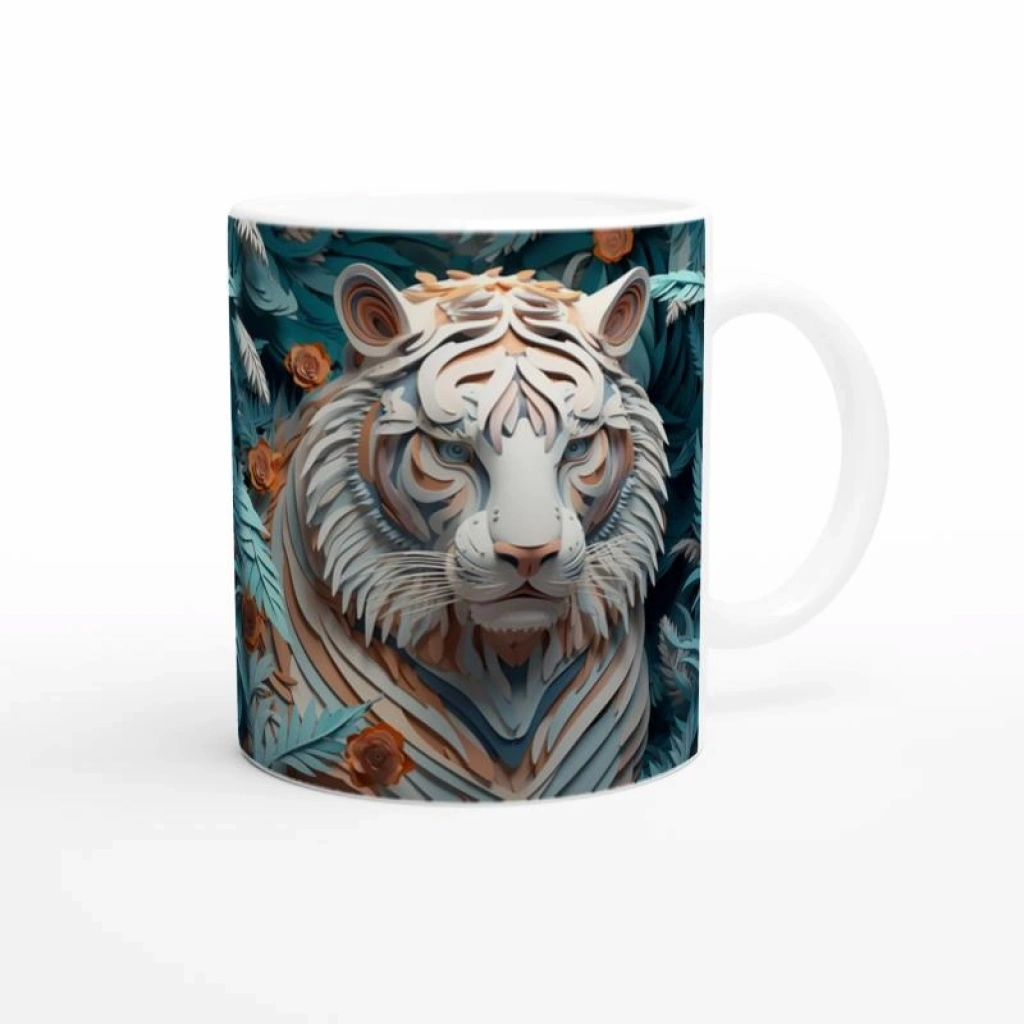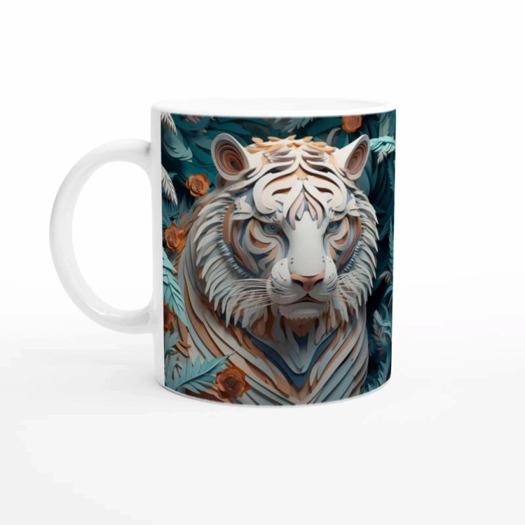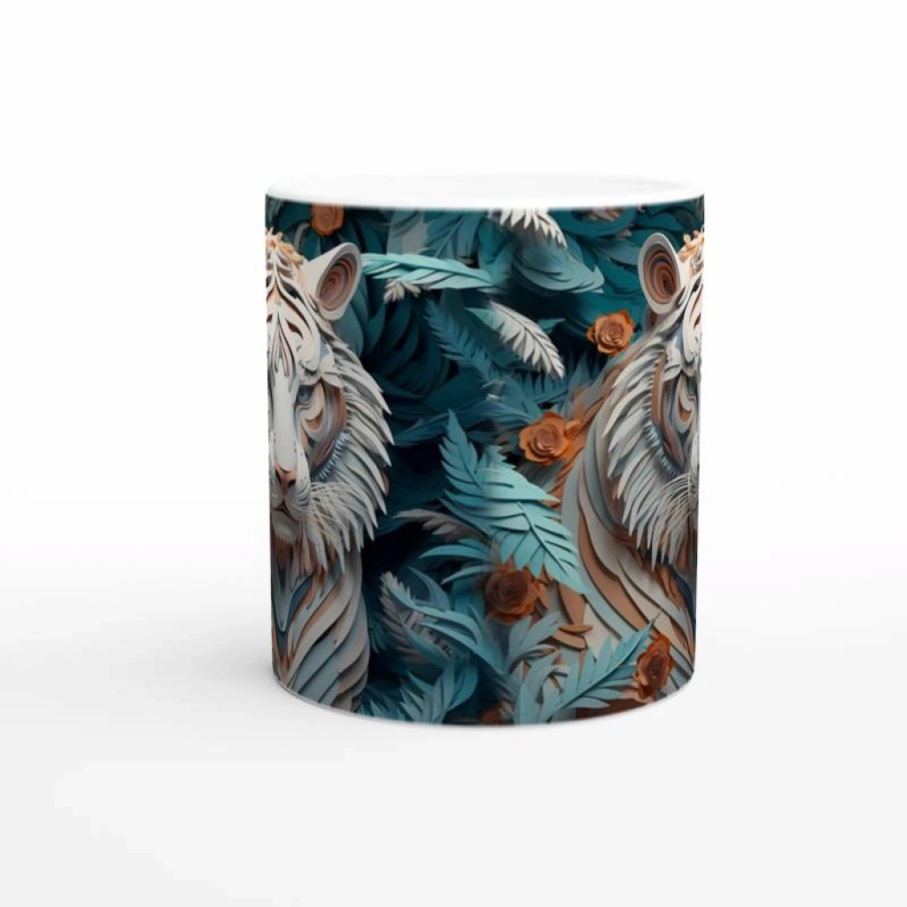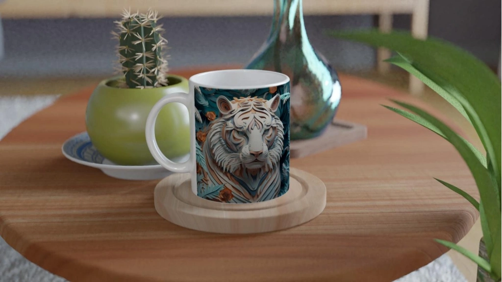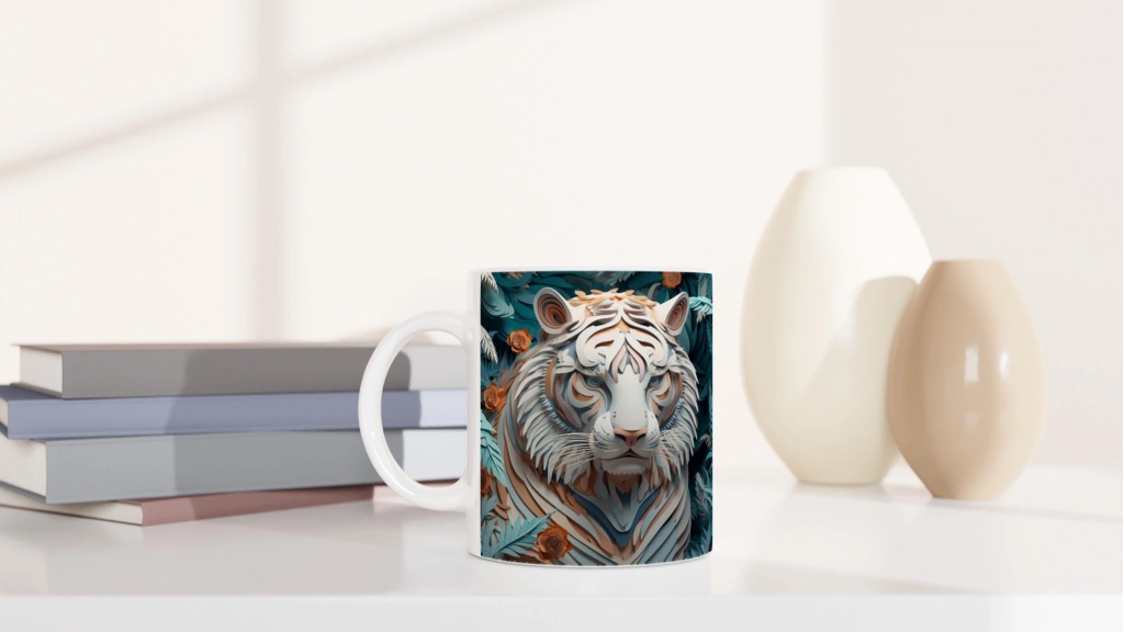 Ormanın Derinliklerinden Bakan Kaplan Temalı Baskılı Kupa Bardak, turkuaz yapraklar ve turuncu güllerle çevrili sanatsal tasarımıyla dikkat çeker. Güçlü, etkileyici ve stil sahibi bir hediye arayanlar için benzersiz bir kupa seçeneği.